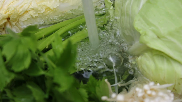 - นำกระหล่ำปลี ผักกาดขาว ผักบุ้ง คื่นฉ่าย เข็ดเข็มทองไปล้างน้ำให้สะอาดและนำมาหั่นให้พอดีคำ